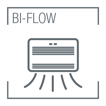 Scelta evoluta dell’uscita del flusso d’aria: sia dall’alto che dal basso, a livello pavimento. Utile in modalità riscaldamento per una diffusione piu omogenea del calore.